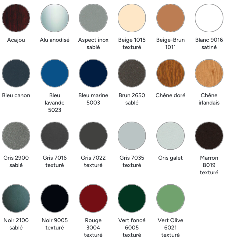 Un grand choix de couleurs vous est proposé afin de trouver la parfaite combinaison avec vos menuiseries.